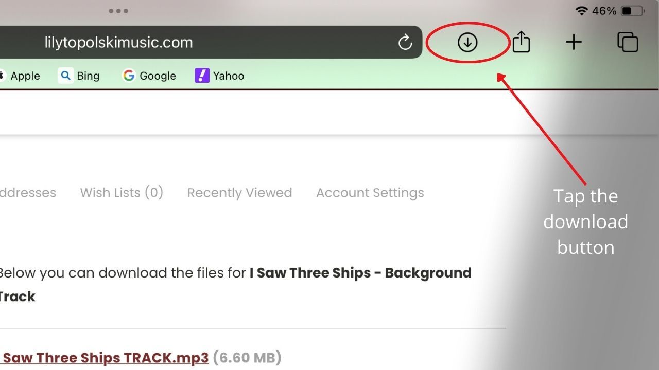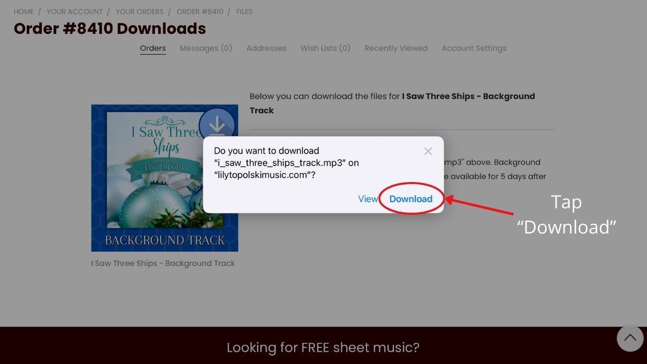 This process is easiest if you download the track on your iPad rather than a computer. If you are using one of my background tracks, I'm going to assume in this article that you have already found the downloads page for the track you purchased on the website. If you are not sure how to get to that point, you can follow the same steps we share for downloading sheet music here: How Do I Download Sheet Music?