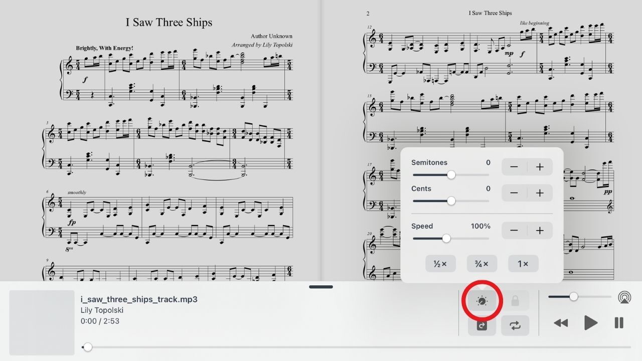 Now that the track is linked to the sheet music, there are a couple of helpful features for practice and performance.
